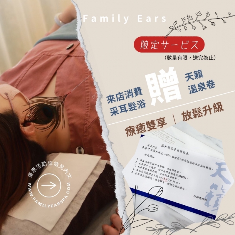 Family Ears不僅提供您專業采耳的享受,更讓前來的您達到五感、身心靈的放鬆!