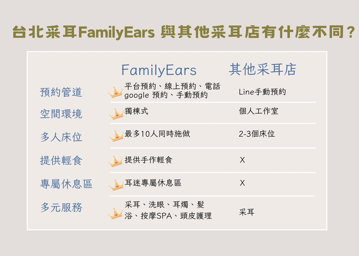 台北采耳FamilyEars與大部分其他采耳店屬於個人工作室的環境不同,是獨棟式空間的專業采耳店,不僅乾淨、舒適,寬敞的空間環境,在享受采耳療程前就能感受如同回到家般的無壓放鬆空間,如此優雅的店面環境,使FamilyEars成為YT網紅熱愛的台北采耳店。